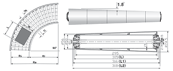 用途:適合圓帶傳動積放式轉彎輥筒輸送機。