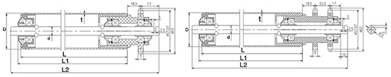 | 輥筒直徑D | 軸徑d | 壁厚t | 常規鏈輪 | 長度L1 | 筒體材料 | 表面處理 |