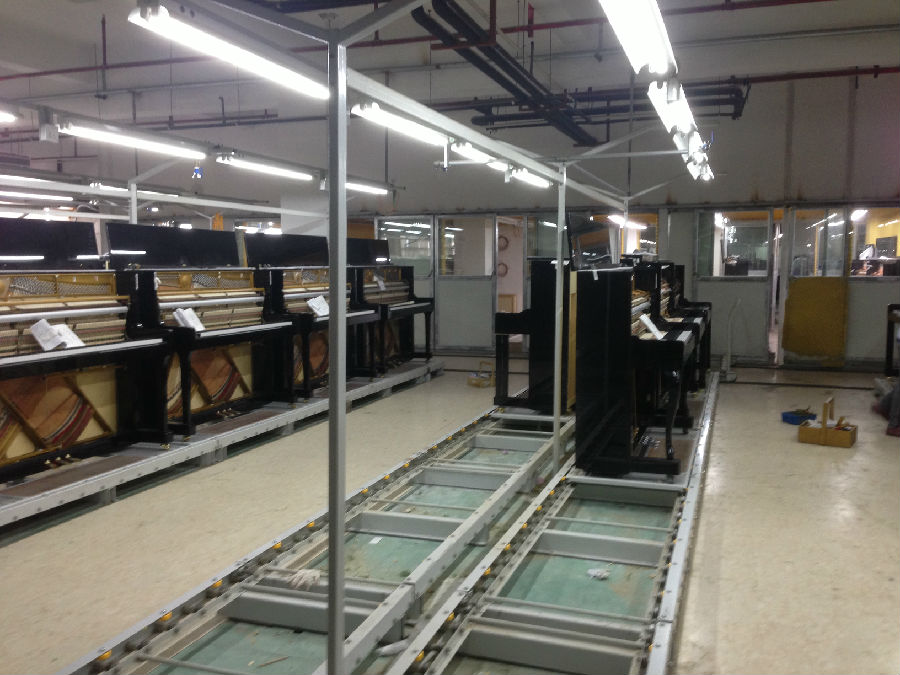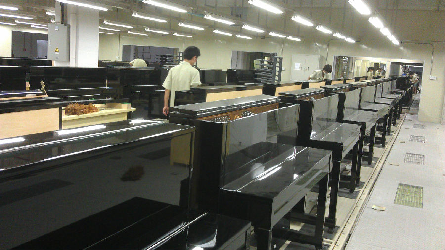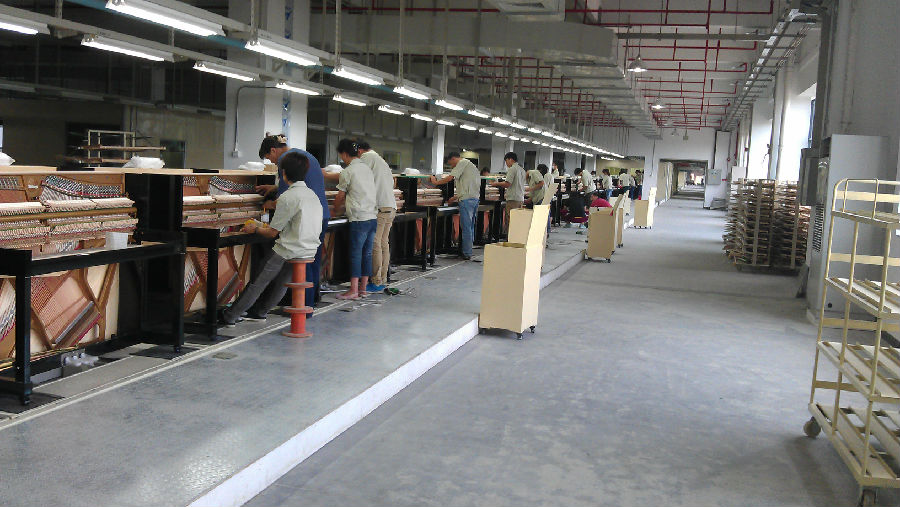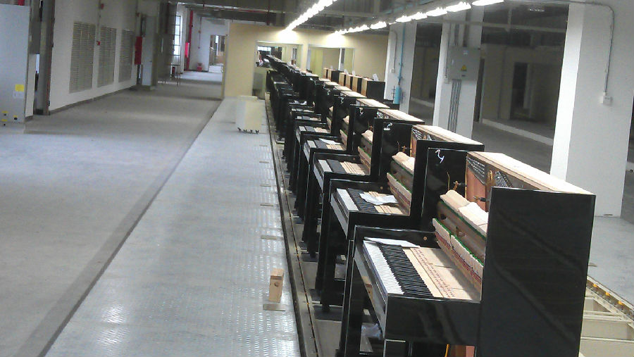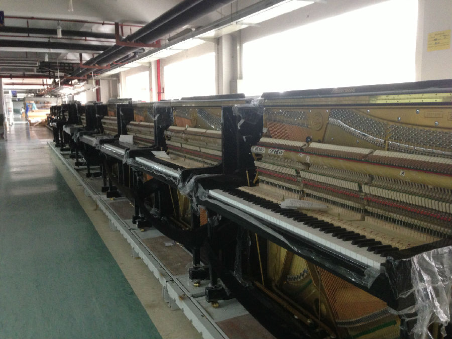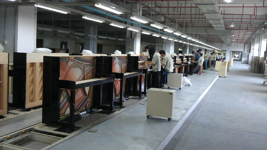珠江鋼琴和寧波海倫共7500米鋼琴總裝流水線